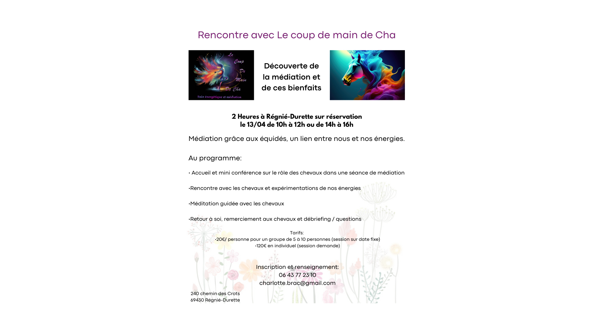 Venez découvrir la médiation équine et ses nombreux bienfaits. Sur réservation par message ou télèphone, nombre de place limiter alors inscrivez vous vite!